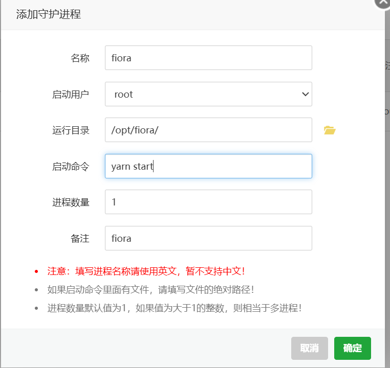 进入容器目录/usr/app/fiora,在这创建一个或修改.env文件,内容填: